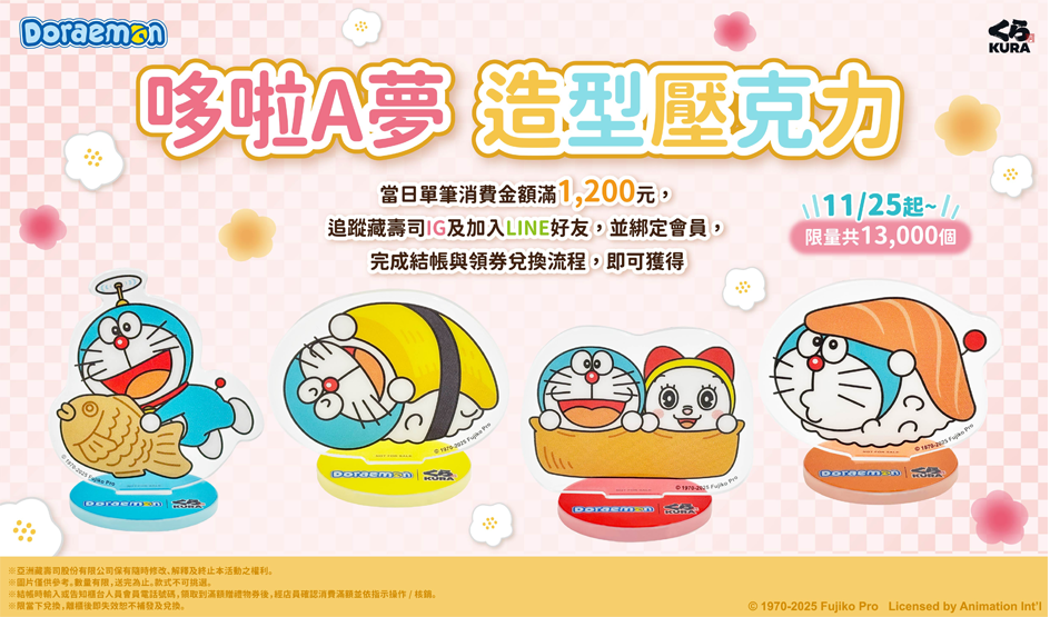 哆啦 A 夢首度亮相藏壽司!13 款獨家壽司造型扭蛋 11 月 14 日起限量開扭