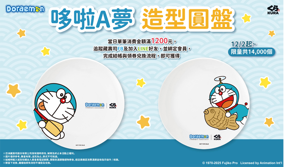 即可將哆啦 A 夢「圓盤」帶回家,用來盛裝甜點或作為擺飾都恰到好處!